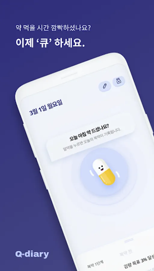 Q-diary is a health care service provided to help with weight control and self-management through medication management prescribed by a doctor. It should not be construed or superseded as an alternative to the consultation, evaluation or treatment of a physician. If there is a risk of harm to the user's health condition and health, please consult with a medical institution, and if the information received or read while using the service contradicts the advice of the medical staff, please follow the medical staff's advice.