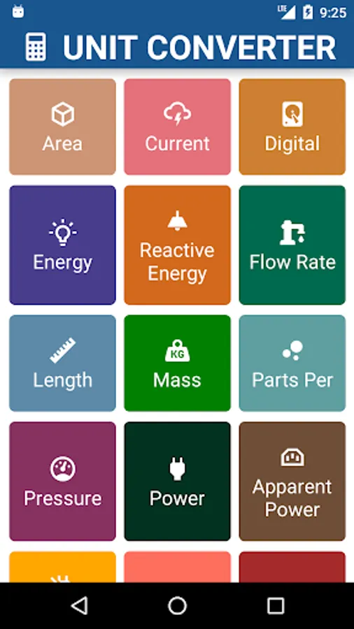Convert units to and from different categories: Area, Current, Digital, Energy, Reactive Energy, Flow Rate, Length, Mass, Parts Per, Pressure, Power, Apparent Power, Reactive Power, Speed, Temperature, Time, Volume, & Voltage.