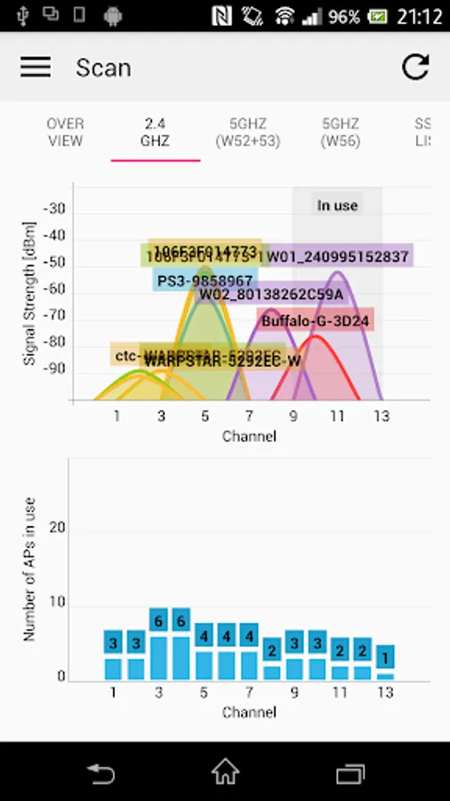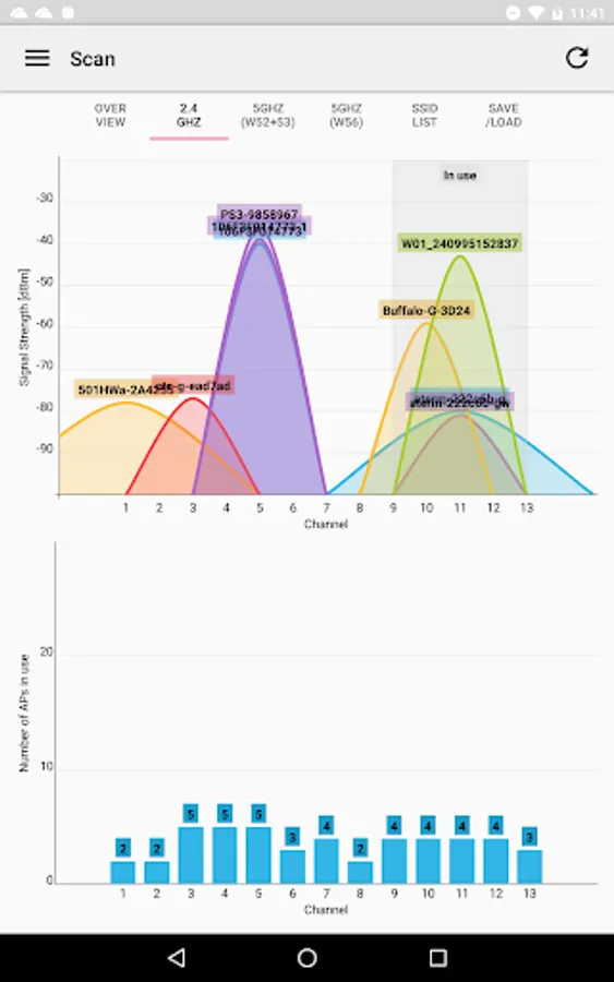 You can scan the surrounding Wi-Fi and visualize the congestion of the channel and signal strength as a graph.