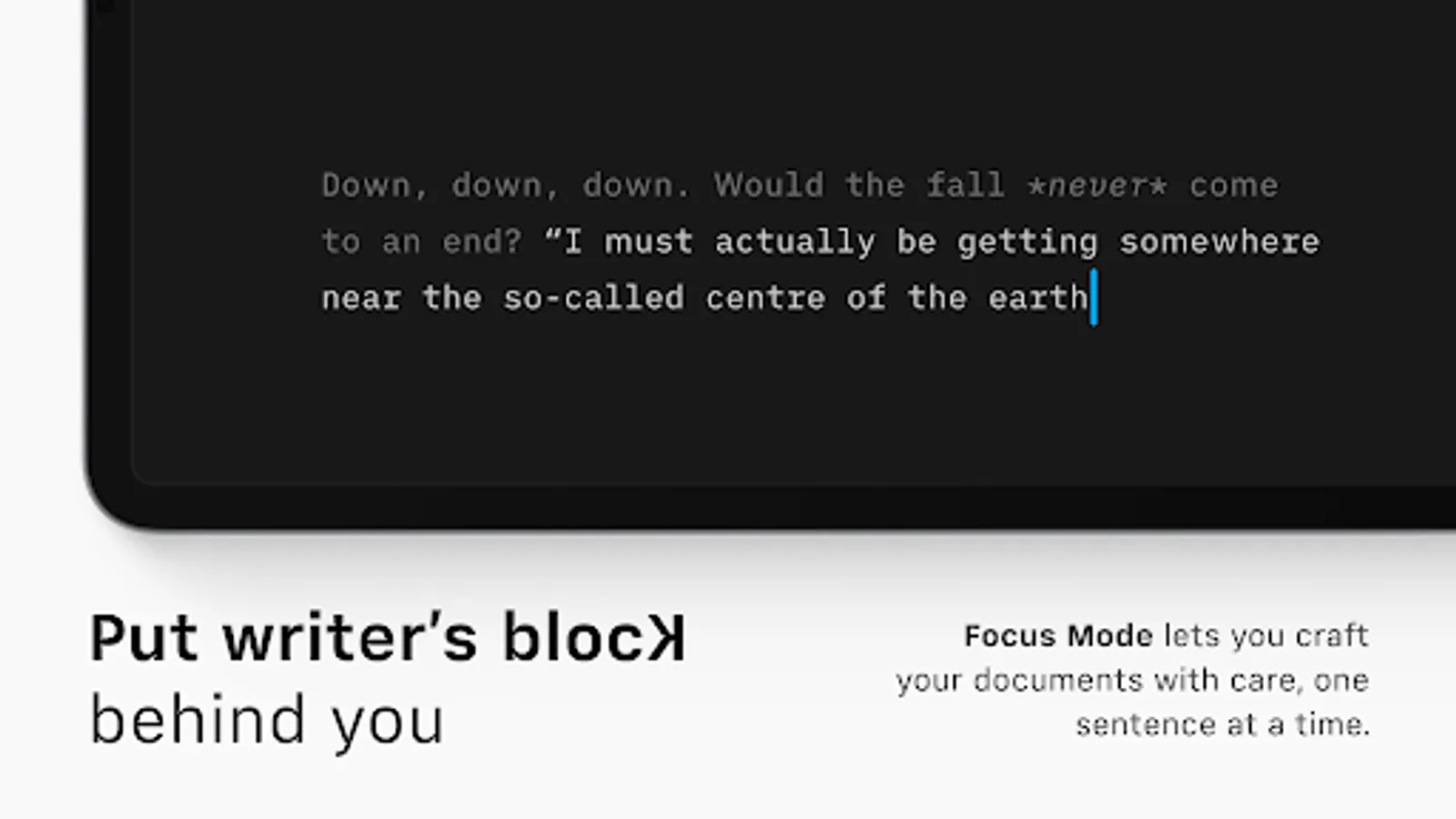 Focus Mode dims everything but the current sentence or paragraph, helping you stay in the flow.