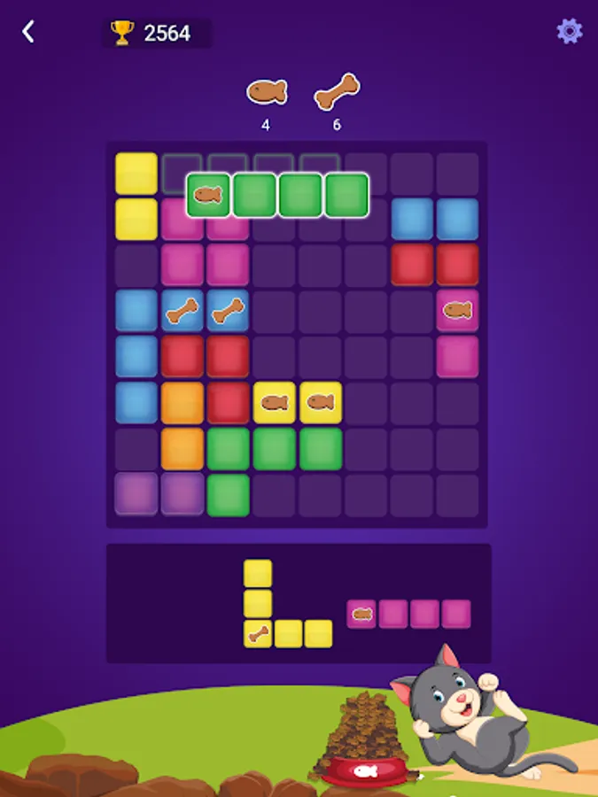 Embark on an animal-themed journey in Adventure Mode! The game board comes alive with cute bones, juicy apples, tasty fish, and playful balls. Your objective is to collect the predefined incentives, like 5 fish and 4 bones, by carefully placing Tetris blocks on the board. The challenge? You must eliminate existing pieces both horizontally and vertically to earn these delightful rewards. It's a puzzle-solving safari where every move counts! Can you outsmart the challenges and help your furry friends?