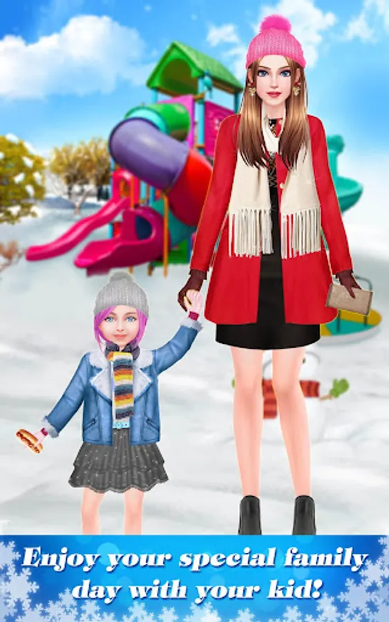 Mommy and daughter are going to have a fun day in the snow. It’s a winter wonderland out there. Download today to play now.