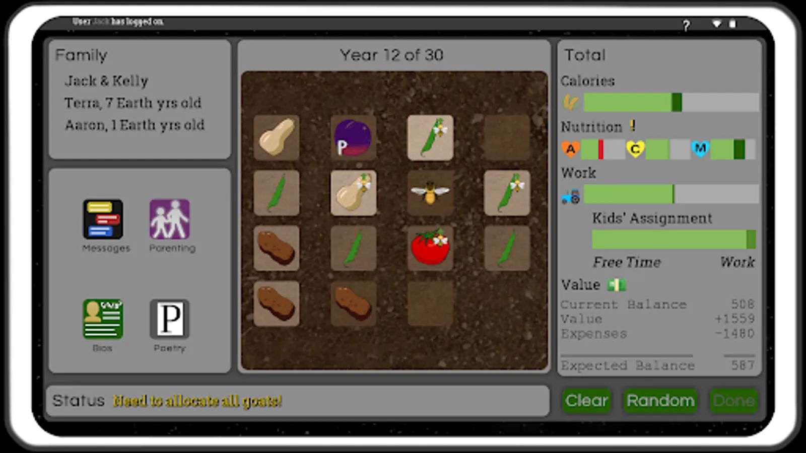 ■ Customizable farm where you balance crops for calories, nutrition, and value.