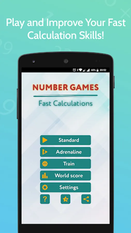 "Number Games : Fast Calculations - super math" helps you practice different mental skills: math, memory, attention, speed, reaction, brain concentration, logic, and more.