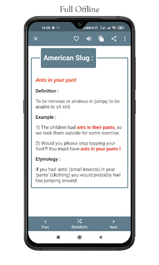 Idioms and Phrases Offline is free app to improve your current English skills. (Idioms, Phrases, Proverbs, Homonyms, American Slangs, British Slangs)