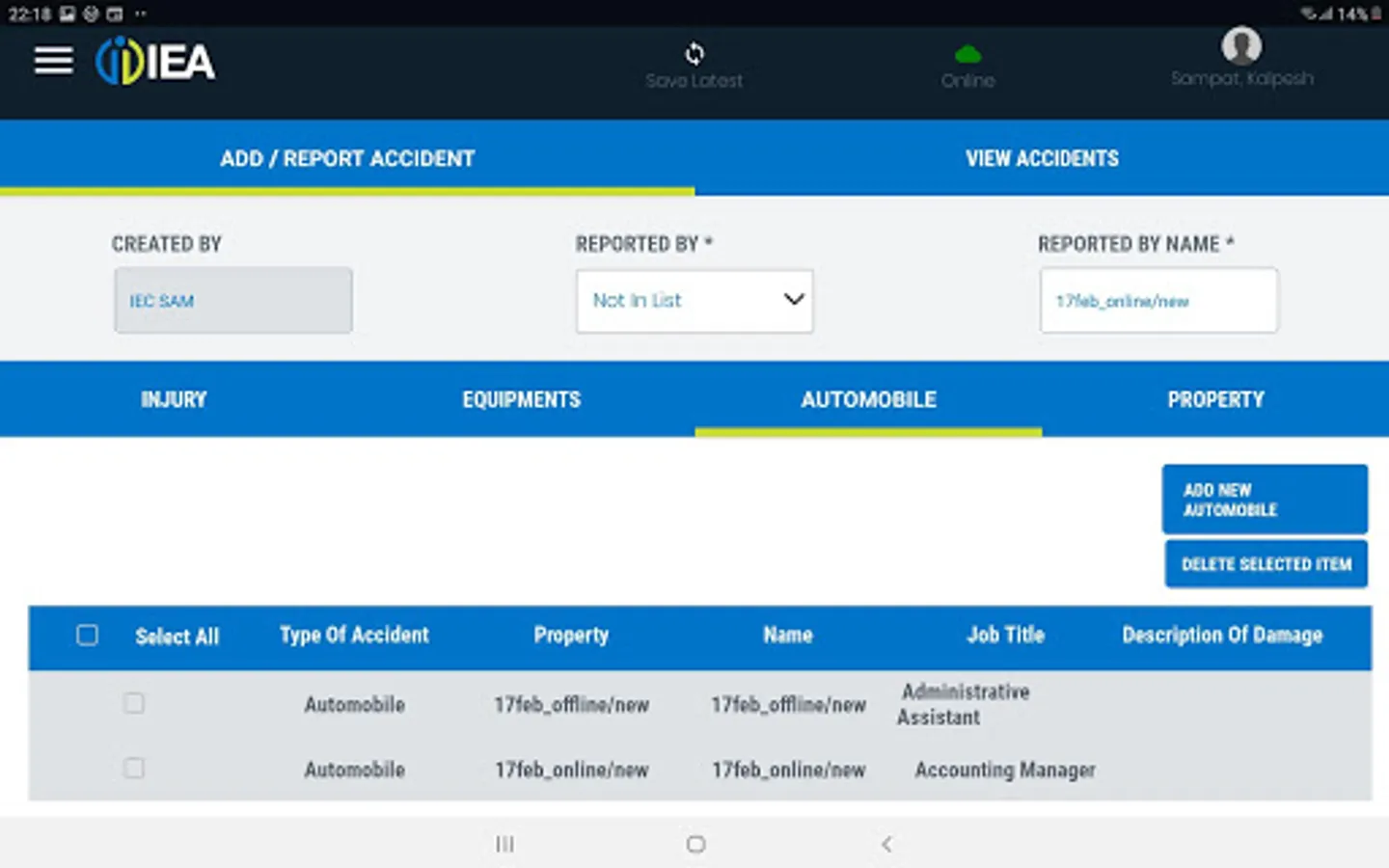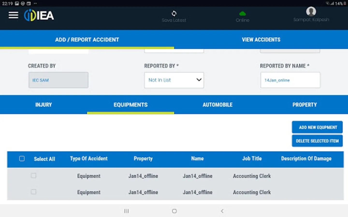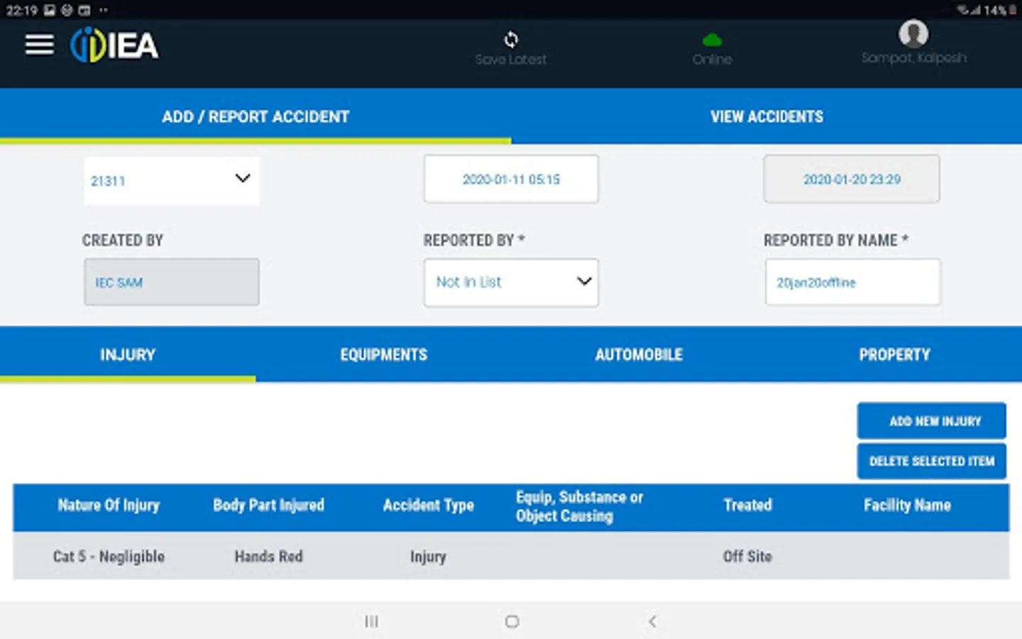 This APP is specifically designed to work only for IEA and Group Companies. APP can capture Accidents happening across sites in online and in offline mode. All the Accidents captured will be done along with linked information related to Equipment, Injuries, Automobiles and Property (more features coming soon) that may have got damaged during the Accident.