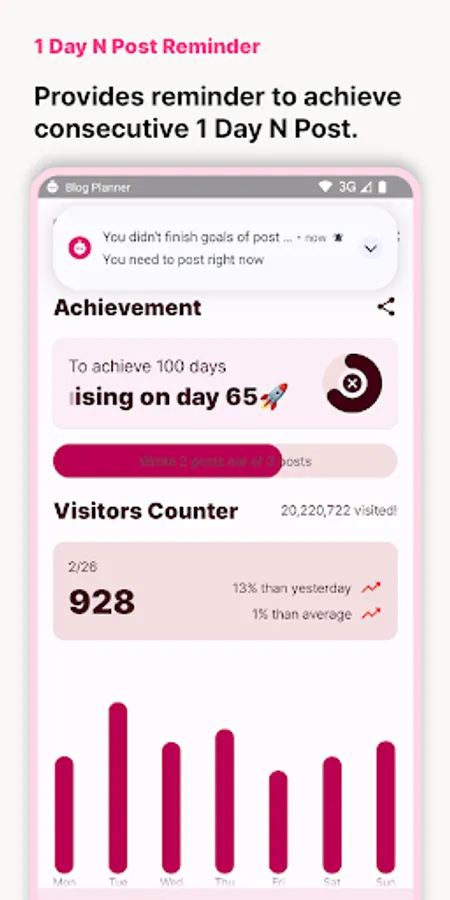 · Provides reminder to achieve consecutive 1 Day N Post.