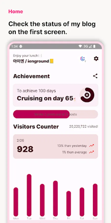 · You can check the number of additionally logged-in Naver Blog and Tistory visitors and the number of visitors to up to 4 Naver Blogs at home. (Pro)