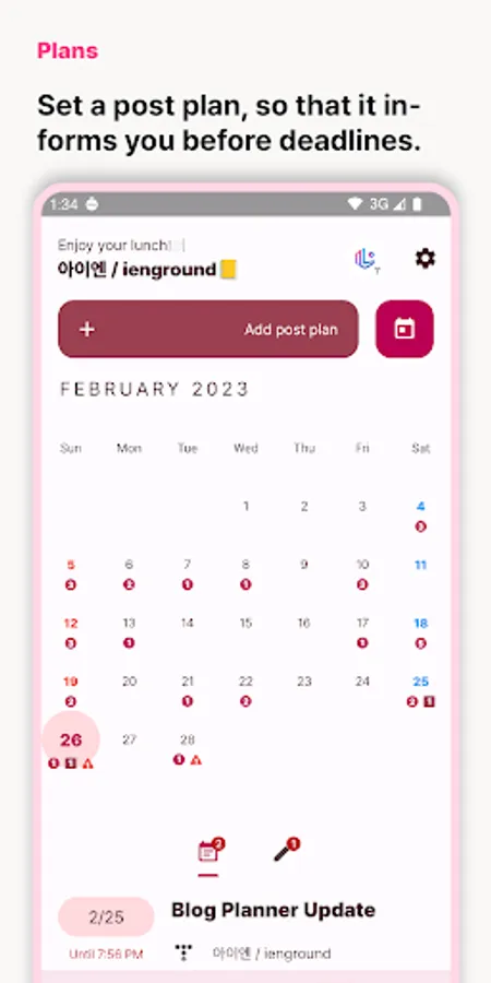 · You can set and manage the scheduled writing time and deadline separately, and you can also take notes of posts. In addition, we will notify you in advance of the scheduled writing time and deadline.