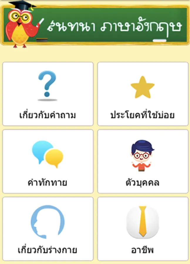 English conversation English primary Used daily For those interested in learning to put into practice. A voice to speak on Categories to be used easily. Update your vocabulary with new uniform.