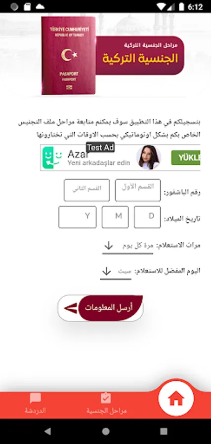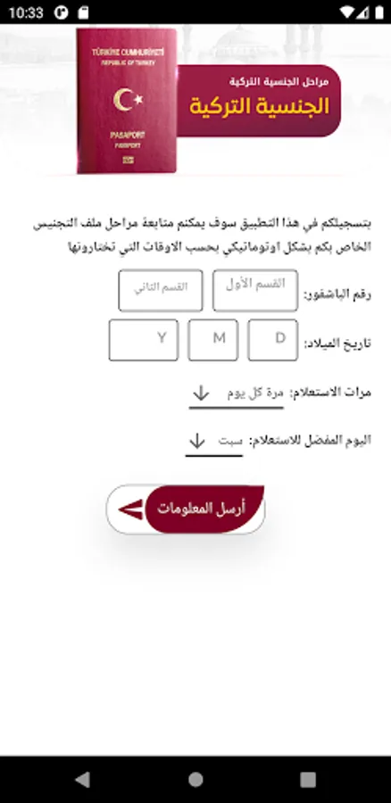 When you register in this application, the cases of updating your citizenship stages will be automatically followed up according to the repetition period you choose