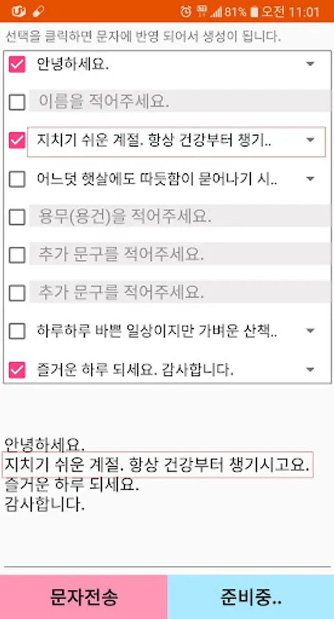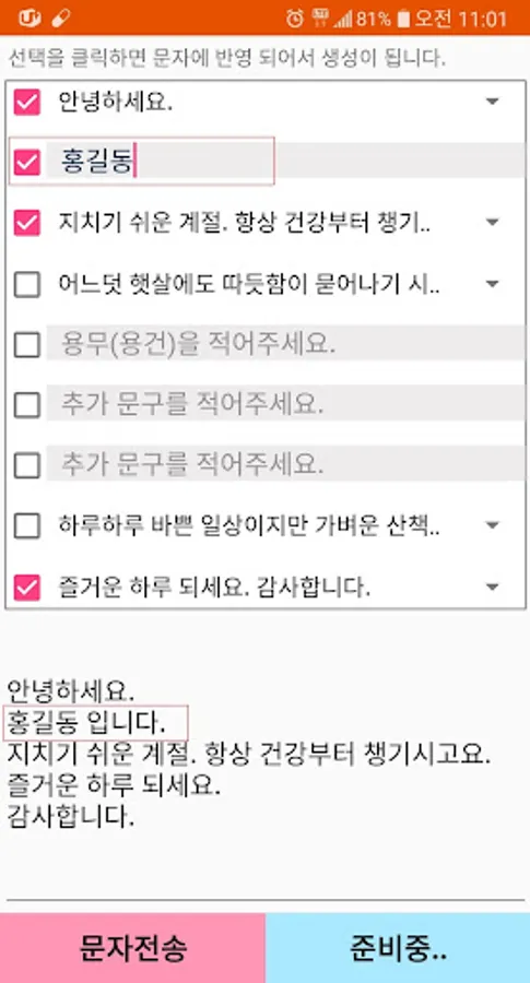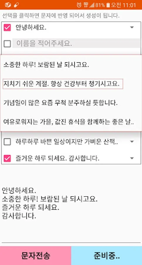 With a simple selection, you can instantly combine your greetings and text phrases in advance and send them as text.