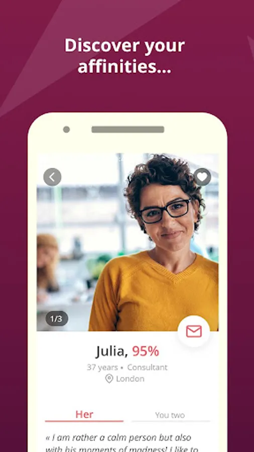 Affiny is a serious local dating app that guides you in building the perfect profile through the unique personality test, designed to find a common connection and a real affinity between two people. It’s never been easier to find a single man or single woman looking to begin their quality love story.
