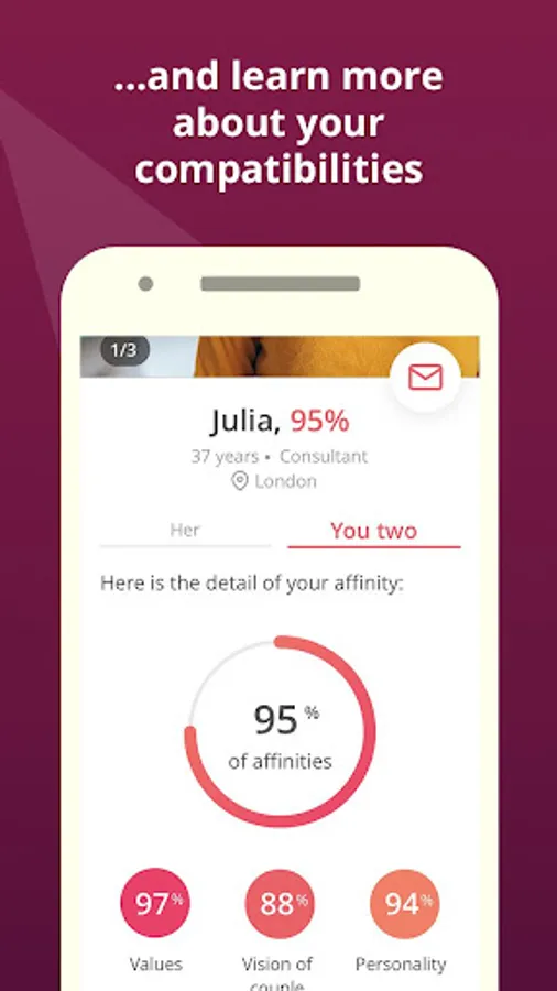 In order to give you an even clearer picture, when a profile catches your eye, you'll see your shared affinity score and a detailed report on the things you have most in common, which strengthen your compatibility together. Exchange messages to increase your chances of finding that significant relationship with a person that you know will love the same things as you do.
