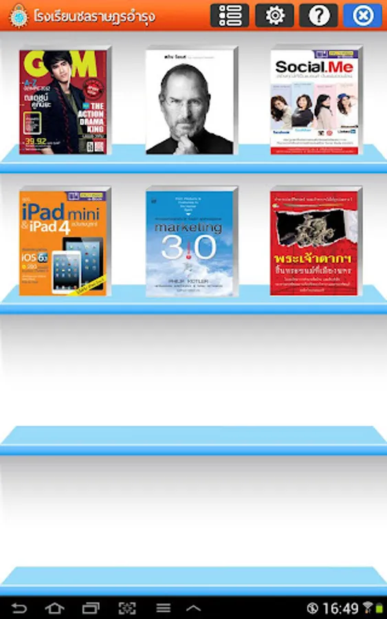 CRU eBook. It also provides features that help users storing and selecting varieties of books. With its systematic categorization management, the items in the library will be categorized into types: newspapers; books; magazines; photo albums; and catalogs. They can be further searched with alphabetical keyword index. The contents of the library can be displayed by: titles display covers, spine or name list.
