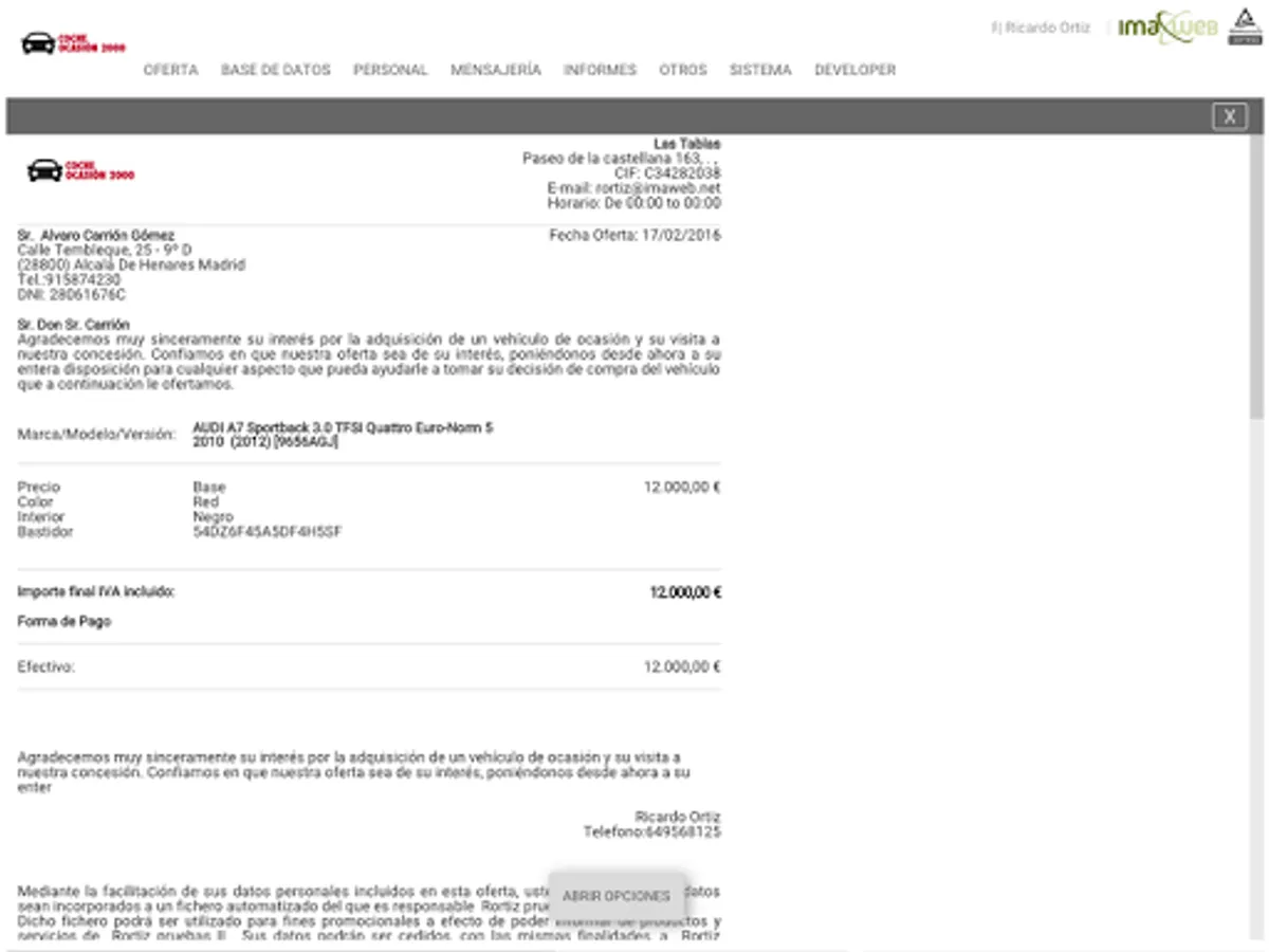 Print delivered to the customer, such as the commercial offer, order, lecterns cars exposed, can be displayed in any desired language (Castilian, Catalan, English, etc.).