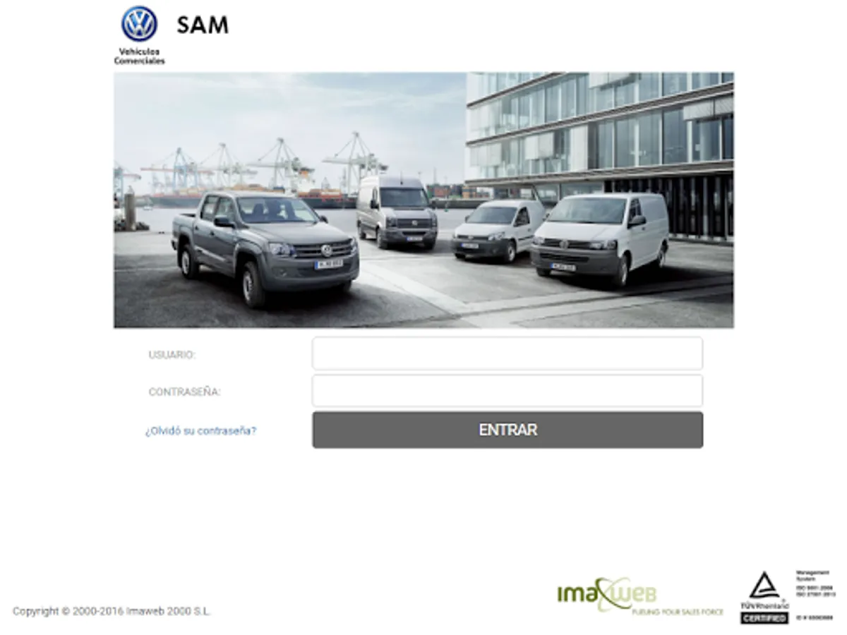 The application Volkswagen Commercial Vehicles Imaweb SAM is a unique system of car sales operations web-based environment designed specifically for the automotive sector experts in car sales, recommended by vendors, dealers and manufacturers alike. They use thousands of sales professionals that have seen significant improvement in its management, profitability and customer loyalty. Its implementation to cover an entire network of dealerships is surprisingly fast, and provides manufacturers with an instant return on investment, not only for improving sales and its image but also by the system of reporting stronger market .