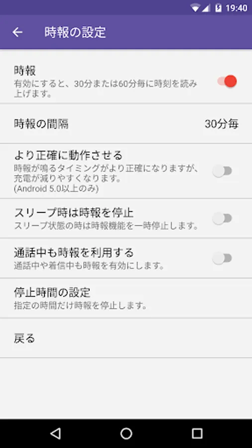 You can also set the time signal to stop for a specified time, such as when you go to bed, or when you are at school or work.