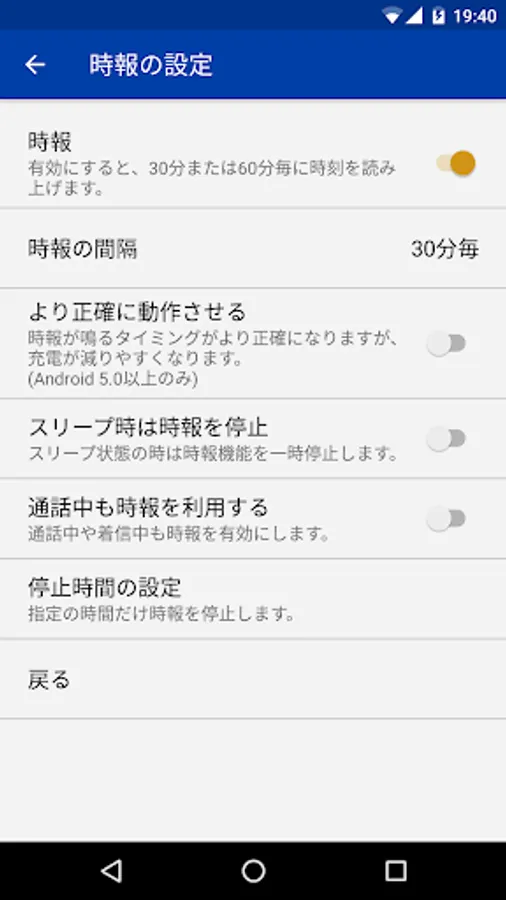 You can also set the time signal to stop for a specified time, such as when you go to bed, or when you are at school or work.