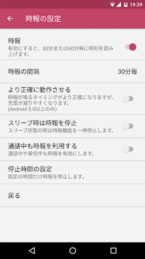 You can also set the time signal to stop for a specified time, such as when you go to bed, or when you are at school or work.