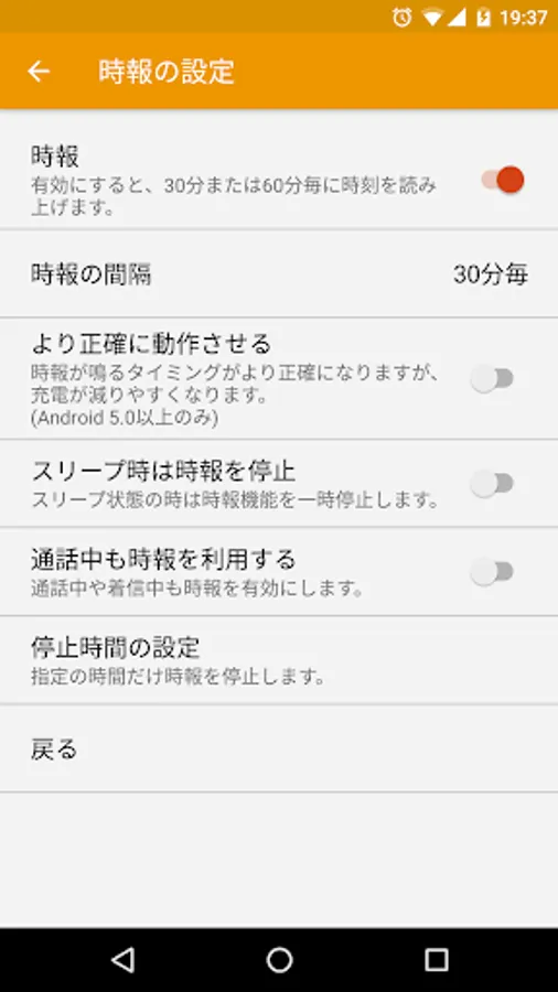 You can also set the time signal to stop for a specified time, such as when you go to bed, or when you are at school or work.