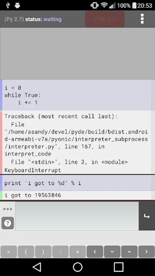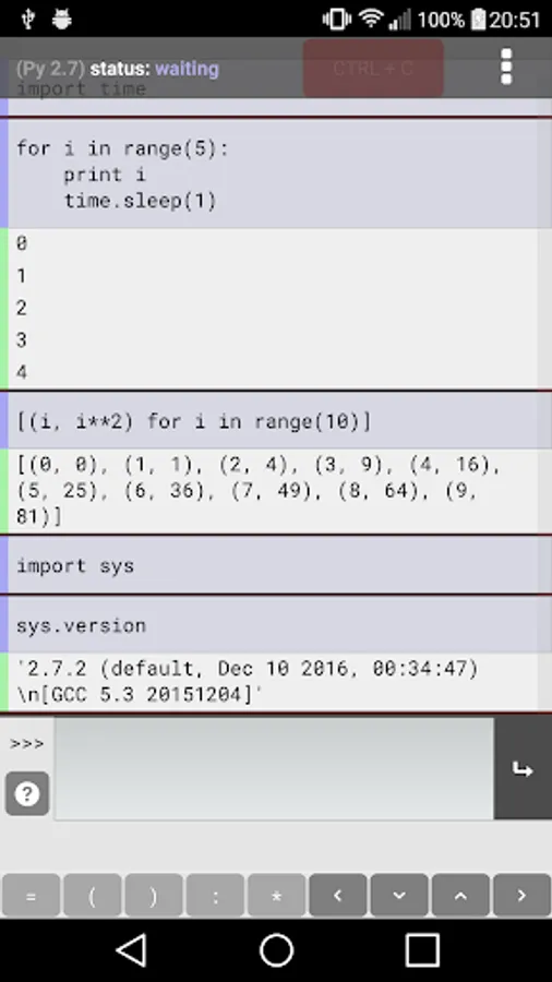 Pyonic Python 2 interpreter Screenshots