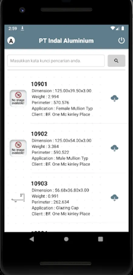 a catalog containing images of the sections used in the fabrication process at PT Indal Aluminum Industry