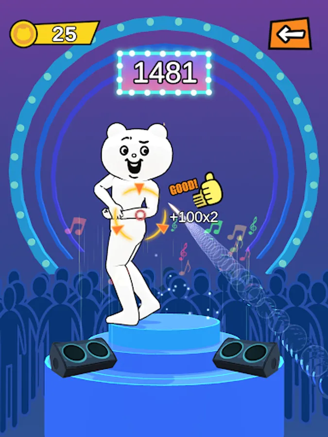 Enliven the audience and get coins to power up your outfits!