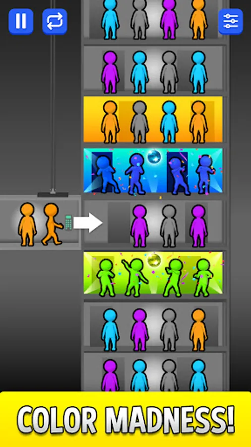 Get ready to move people to their correct floors in this fun and challenging game. This is Elevator sorting, a mind blowing puzzle game! Your goal is to match avatars of the same color by strategically picking them up or leaving them behind as you ride the elevator and leave them on the correct floor. You will need to think ahead to solve each level.