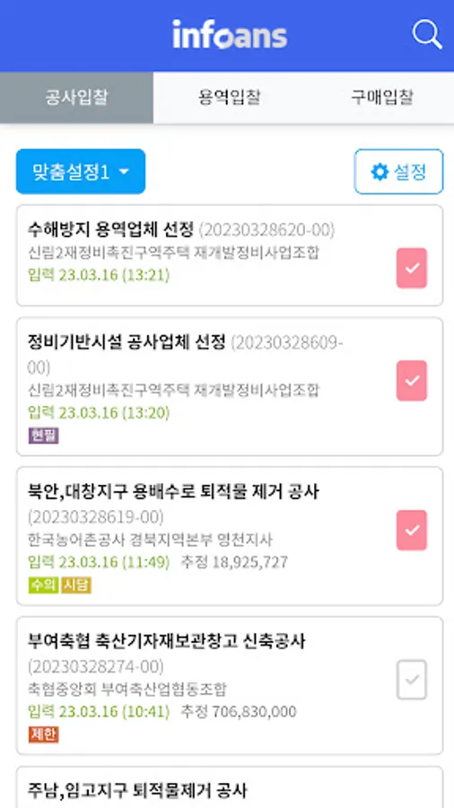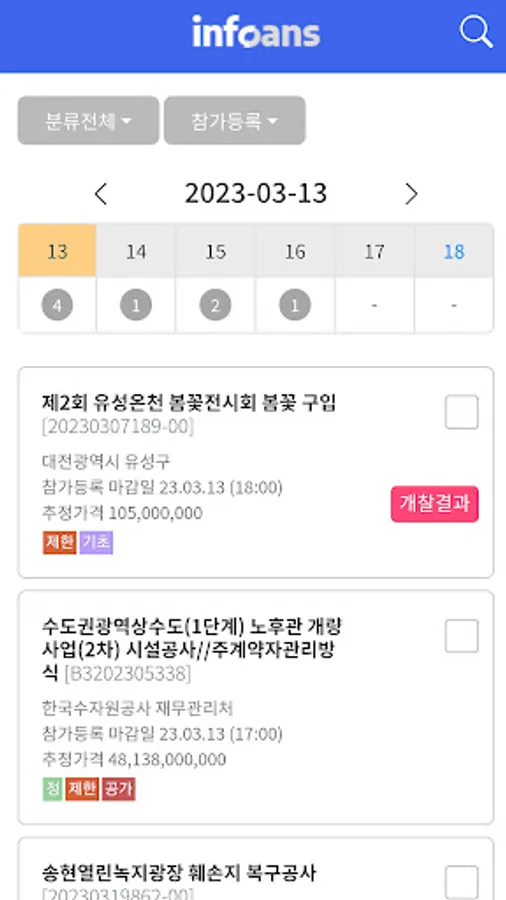 ■ Customized bidding/success information: Provides real-time information updates, opening bid results, and bidding price information for participating companies