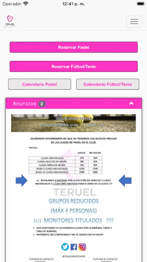 With this Teruel SC application you can reserve a track at our facilities.