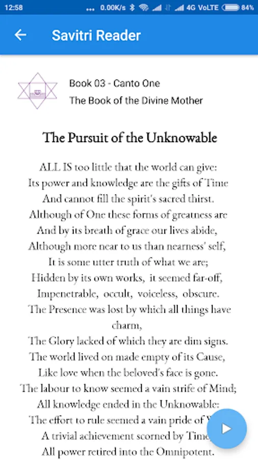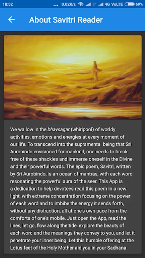 This App is a dedication to help devotees read this poem in a new light, with extreme concentration focusing on the power of each word and to imbibe the energy it sends forth, without any distraction, all at one's own pace from the comforts of one's mobile.