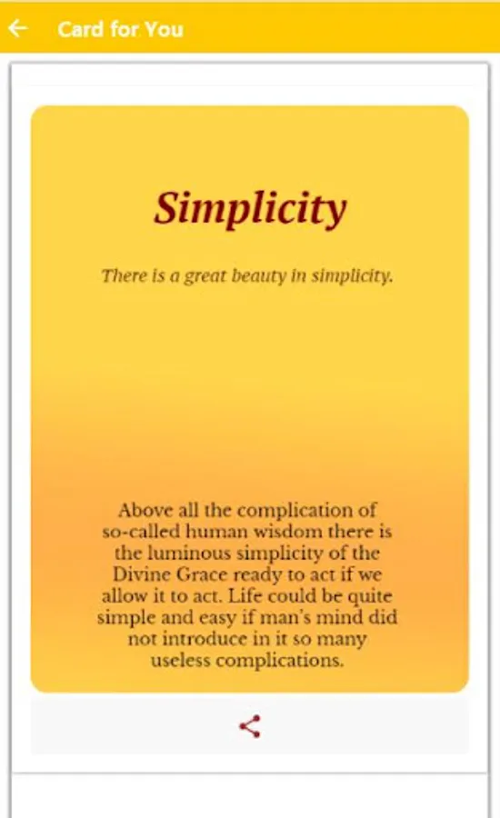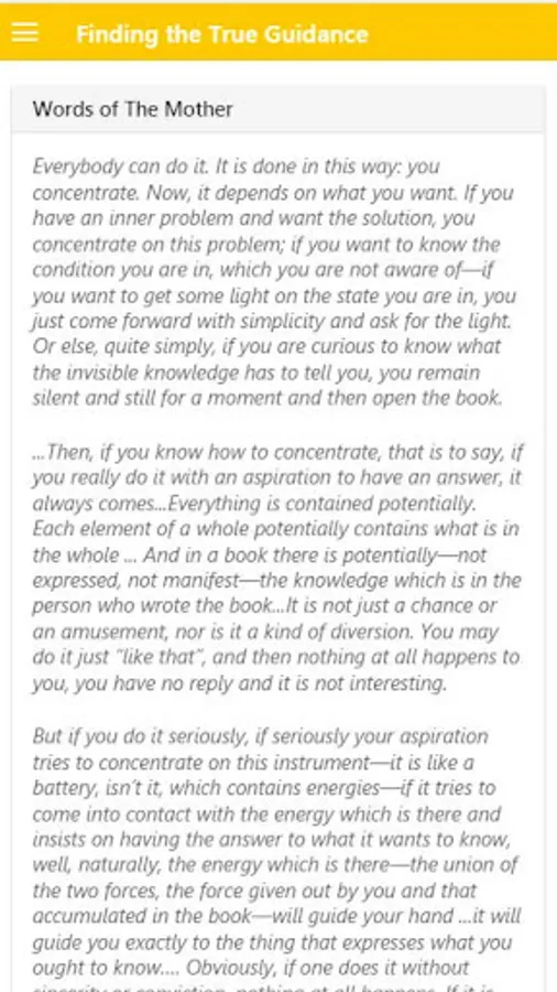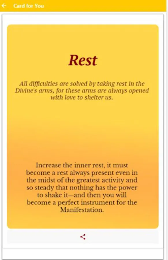 Install the application on your mobile, open it, concentrate and aspire from within and with a silent prayer to the Divine seeking guidance, click on the card to view your personal message from the selected Quotes.