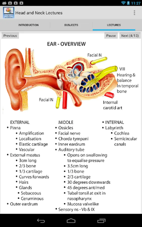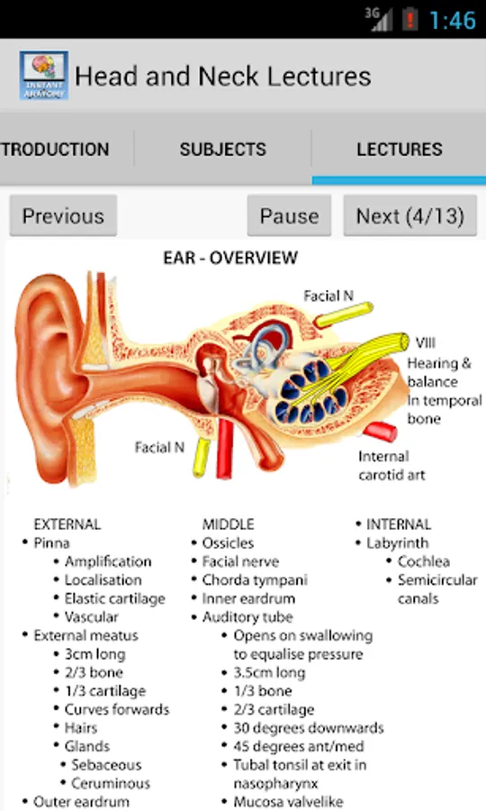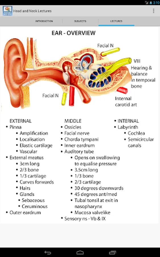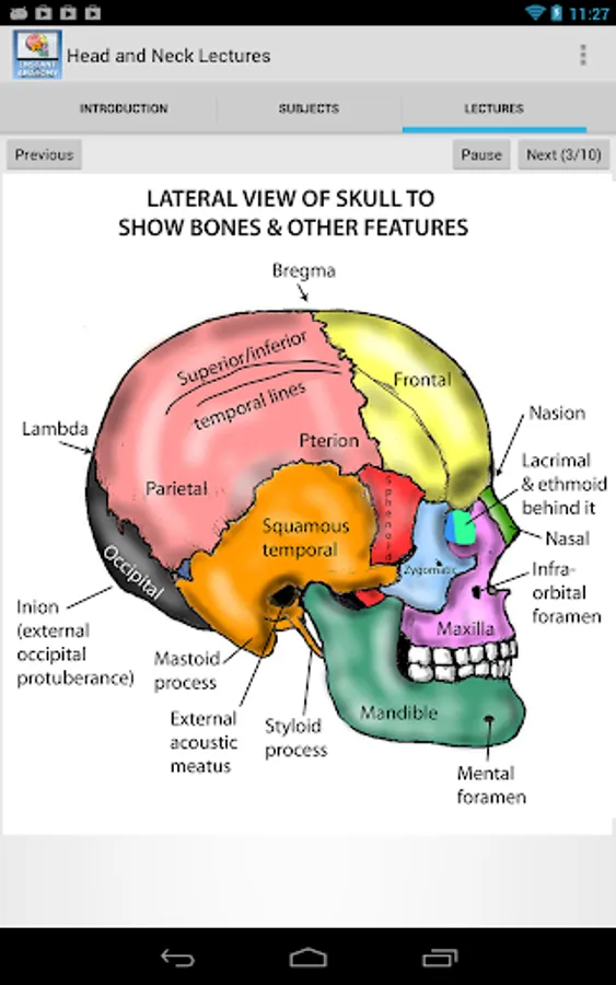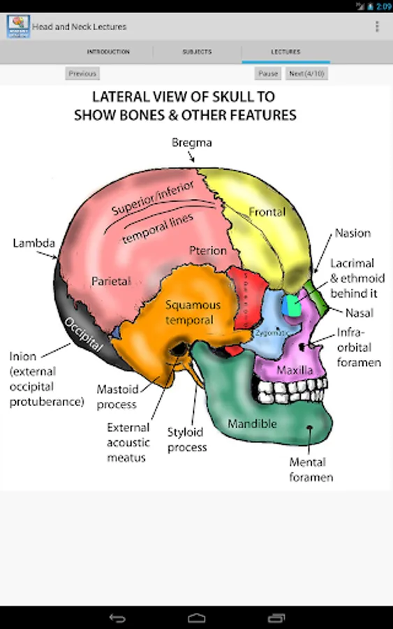 In this application you will find the lectures on the head and neck along with the associated diagrams that accompany them.