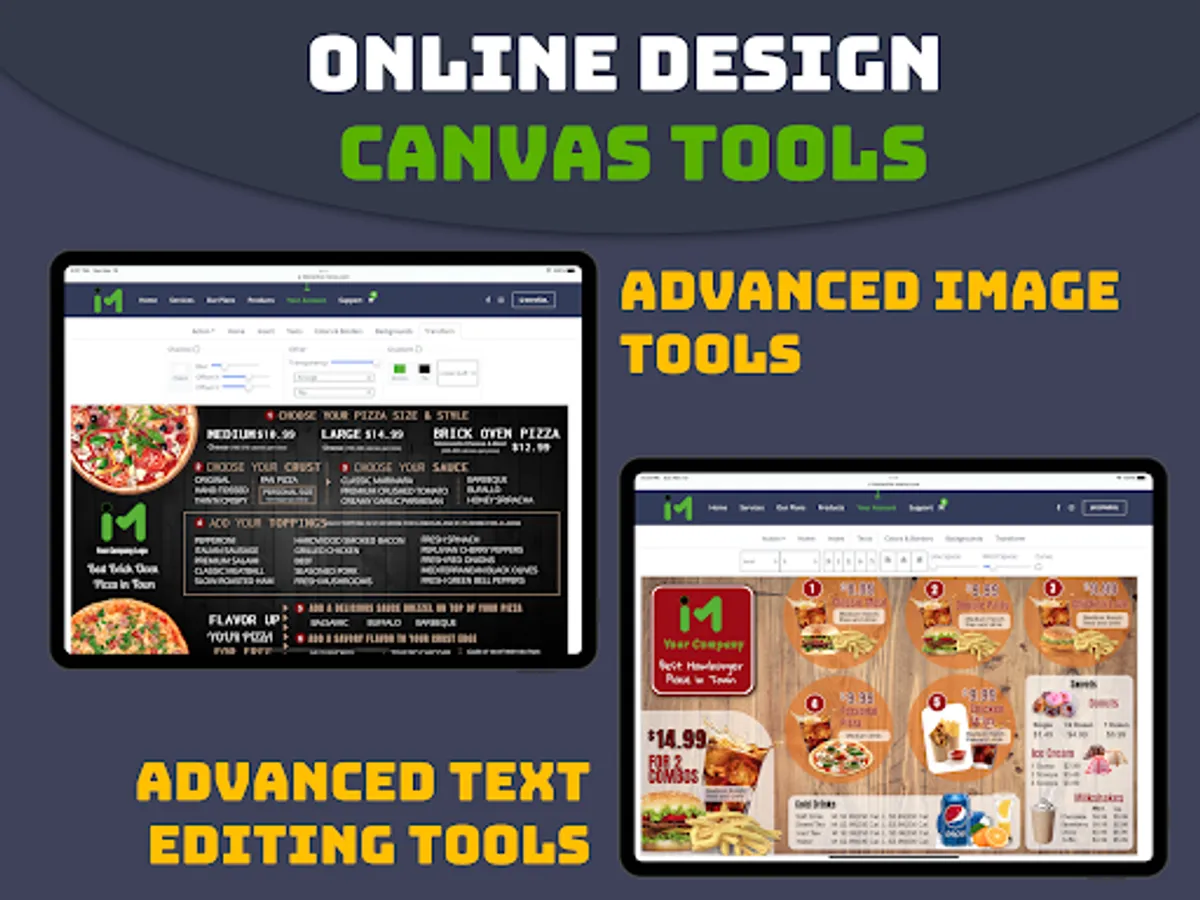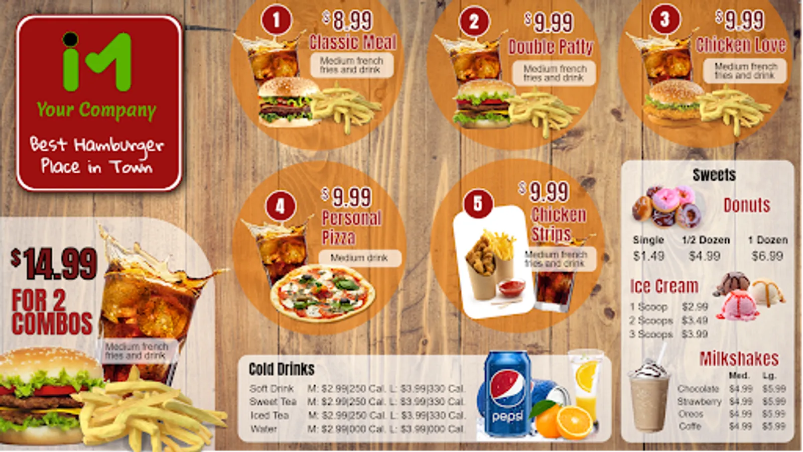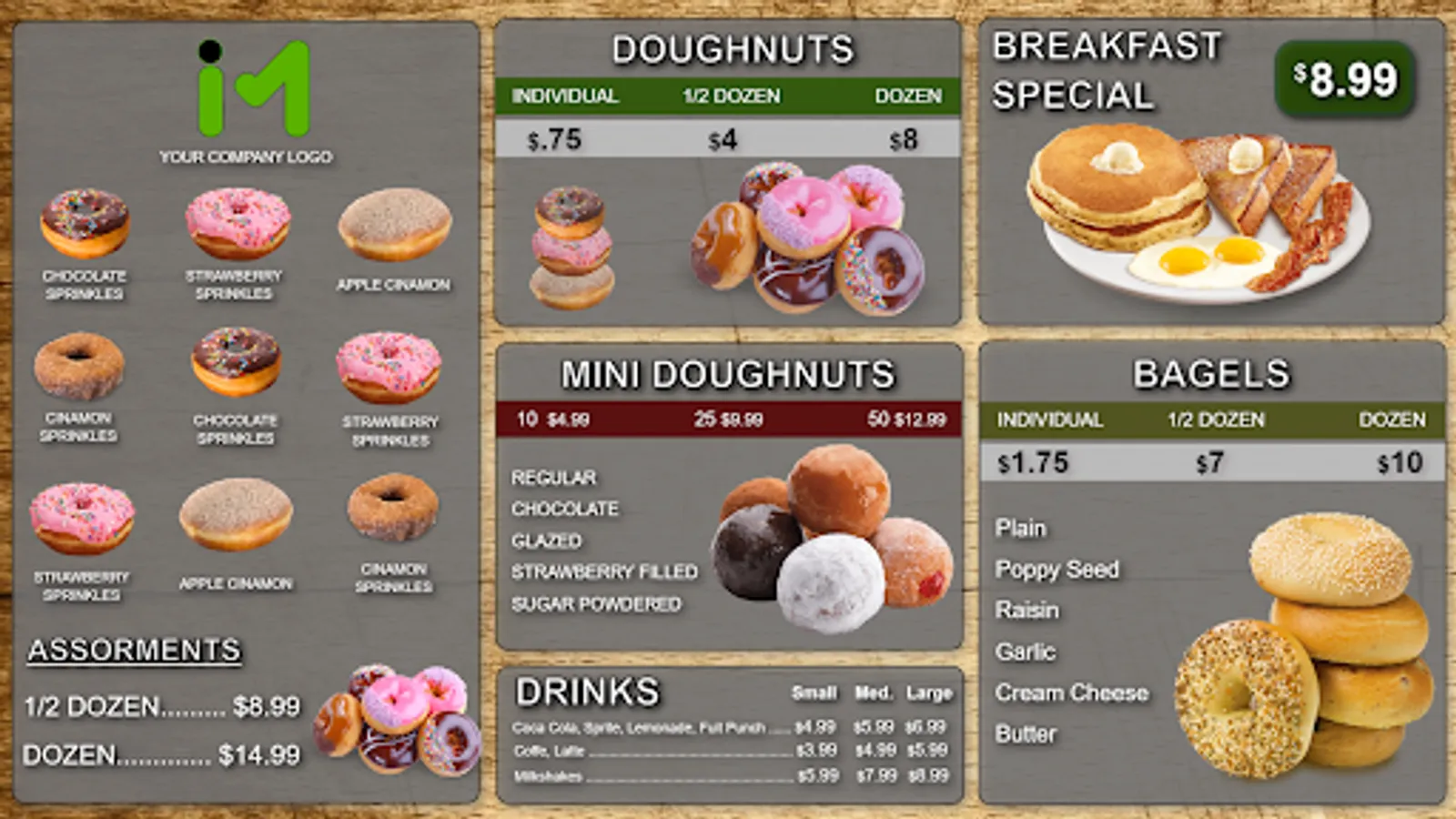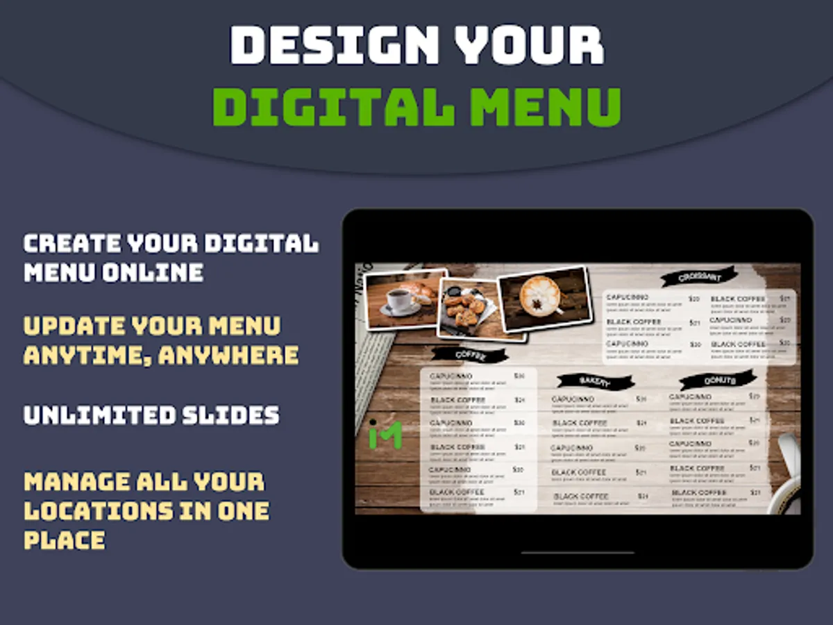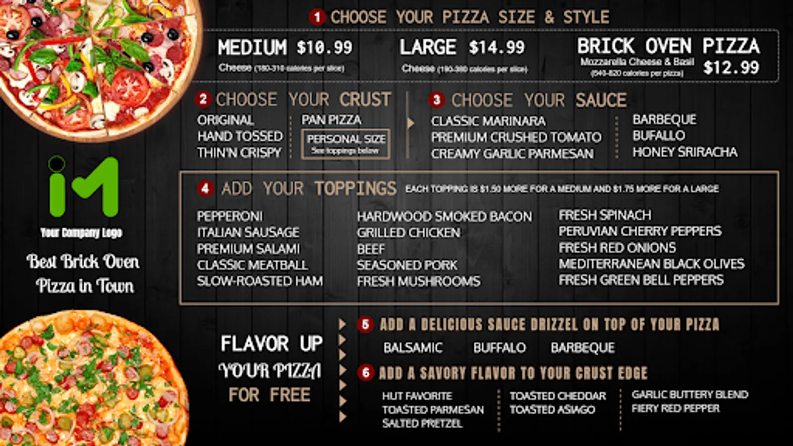 Interactive menus (iM) is a digital signage software to display photos, videos, weather, and news on LCD/LED screens. You can also create digital menus for businesses such as restaurants, cafeterias, pizzerias, and much more.