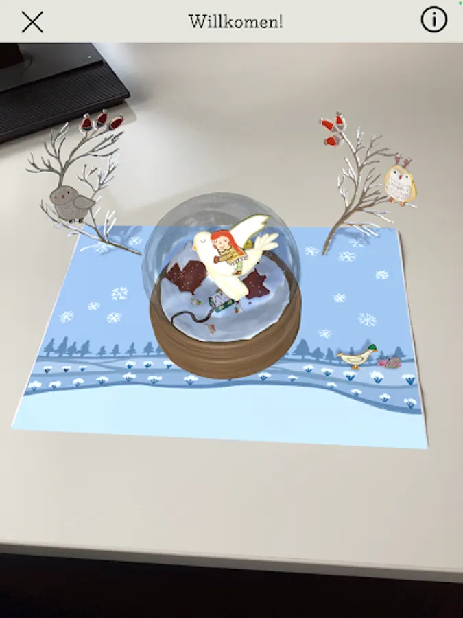 This AR app recognizes book pages and plays music, shows 3D holograms, videos and more. Works with the book "Rolf's Winter Secrets" by Rolf Zuckowski and Sarah Settgast from the Deutsche Pappebuch Gesellschaft.