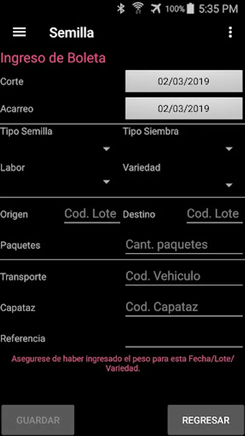 This application allows the capture of cut, elk and transfer of sugarcane seed.