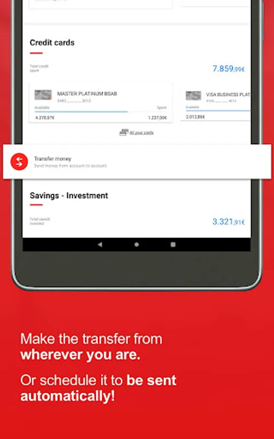 Welcome to the ActivoBank app that allows you to use our distance banking service from your mobile or tablet. Download it for free to access and manage your accounts, whenever and wherever you want, in an easy and hassle-free way.