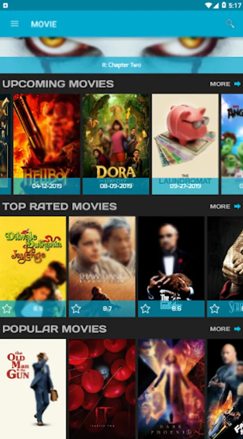 The app provides links to any official movie trailers. All available on Youtube to make it easy to access.