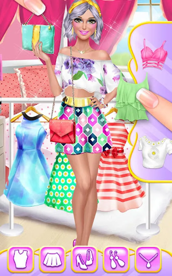 When her gorgeous hair is styled, head to the makeup counter to try on a fun summer look. Apply bronzed blush, golden eyeshadow and natural lipstick. Or go wild with the colors of the rainbow! The choice is up to you!