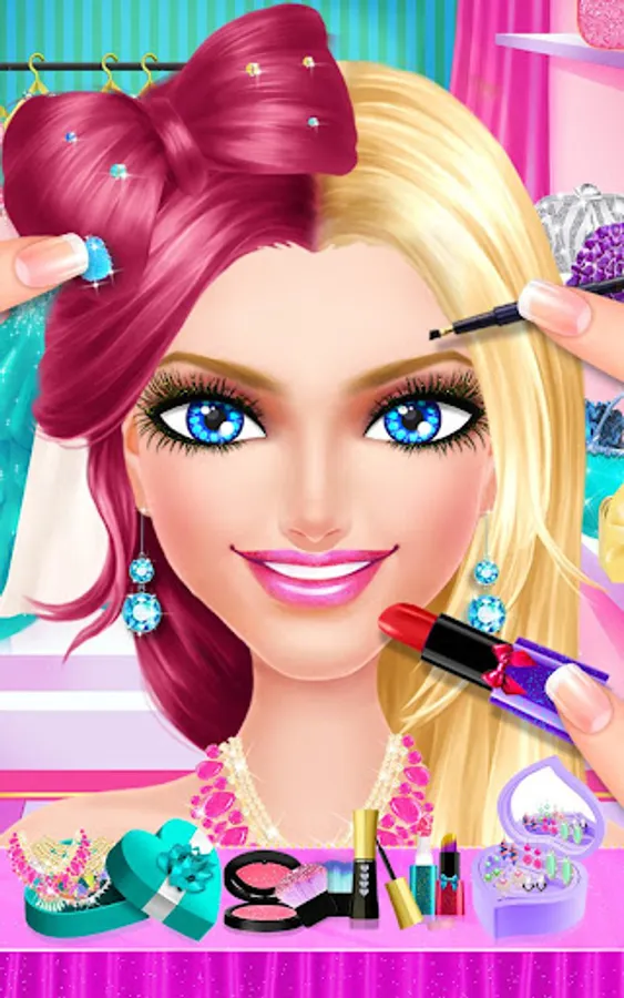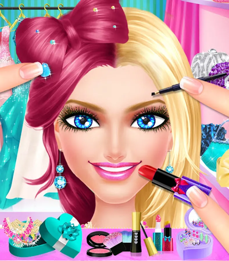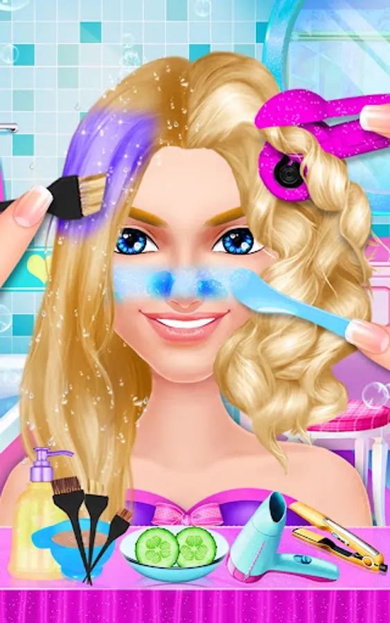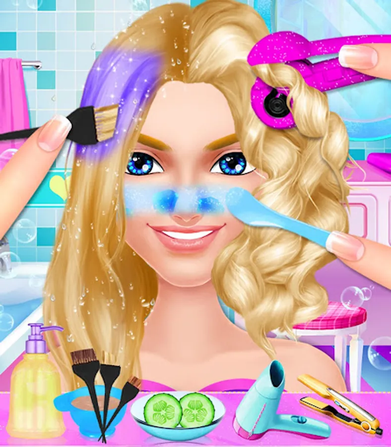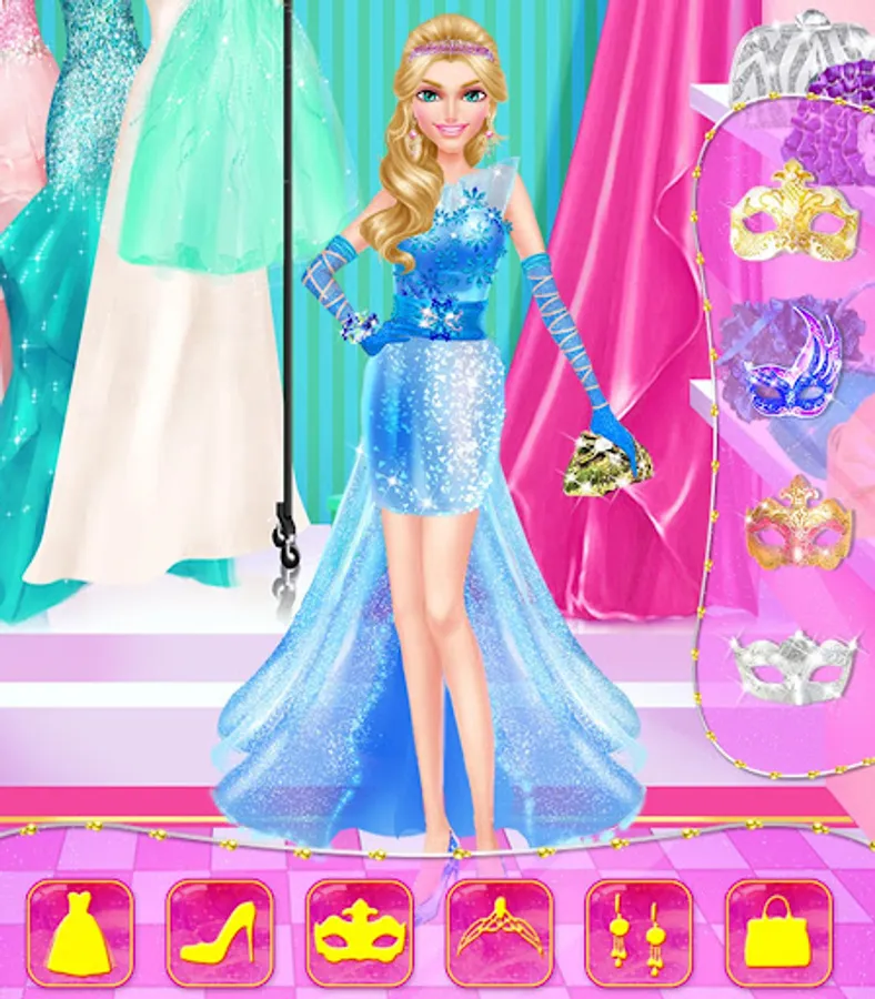 How to be a charming princess, lesson one: have the best hairstyle, makeup and dress in the world! Prom Night Salon: Hair Stylist is a fun hairstyle, dress up and makeup game for girls that lets you turn models into beauty queens. These princesses are getting ready for their prom, but they need your help to look extra beautiful. They can't dance if their hairstyle is falling apart or their dress is old. Give them new makeup so they can find their prince charming out there on the dance floor!