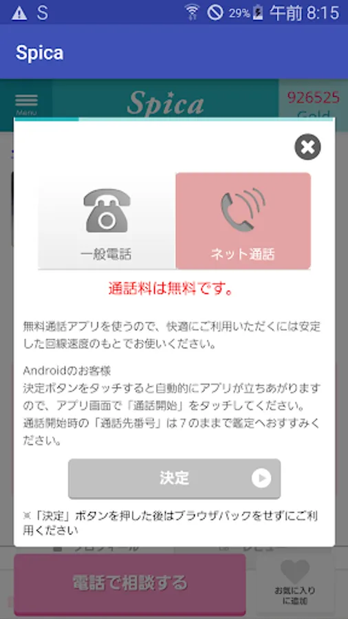 If it is a net call from a dedicated app, the call charge will be << 0 yen >>