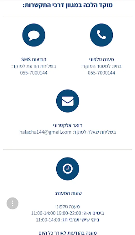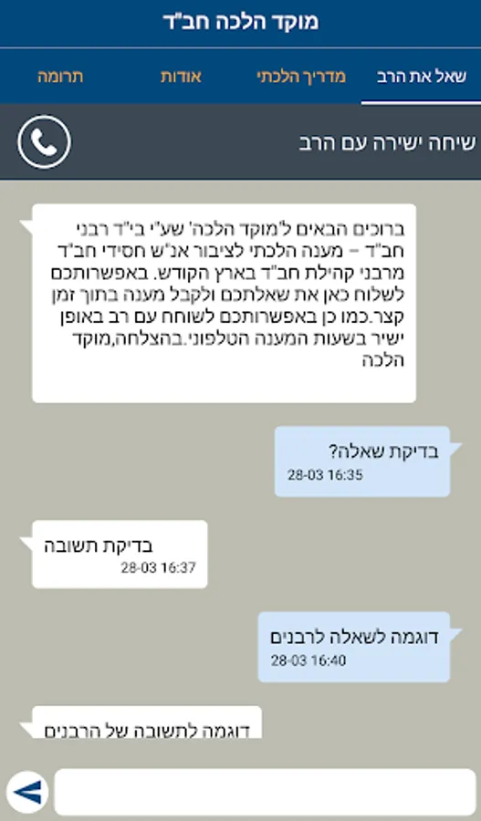 The Halakha center includes: a call center, a SMS call center and an email questions center.