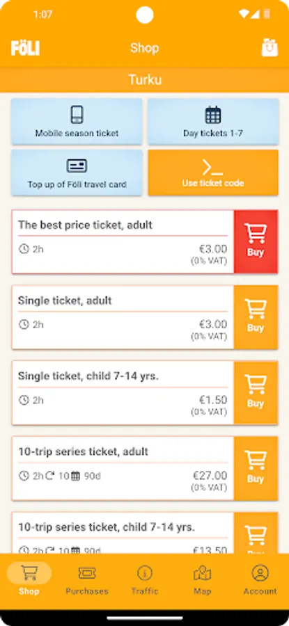 With Föli app it’s easy to buy Turku region traffic tickets and search for the best routes. You can buy single and day tickets and top up travel cards. You can use all the most popular digital payment methods.