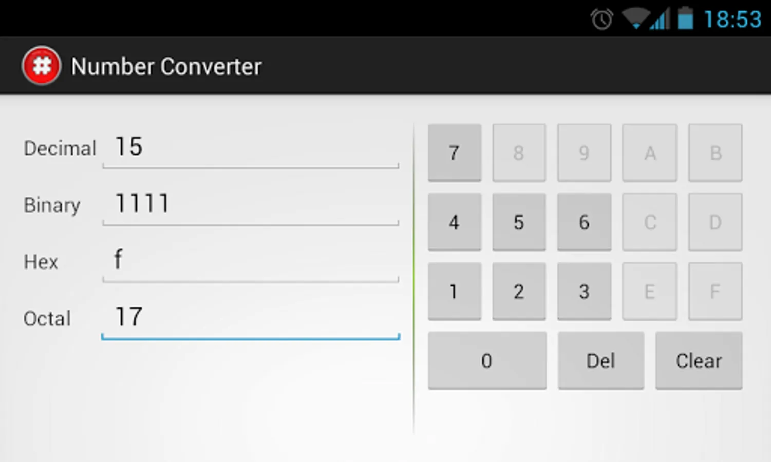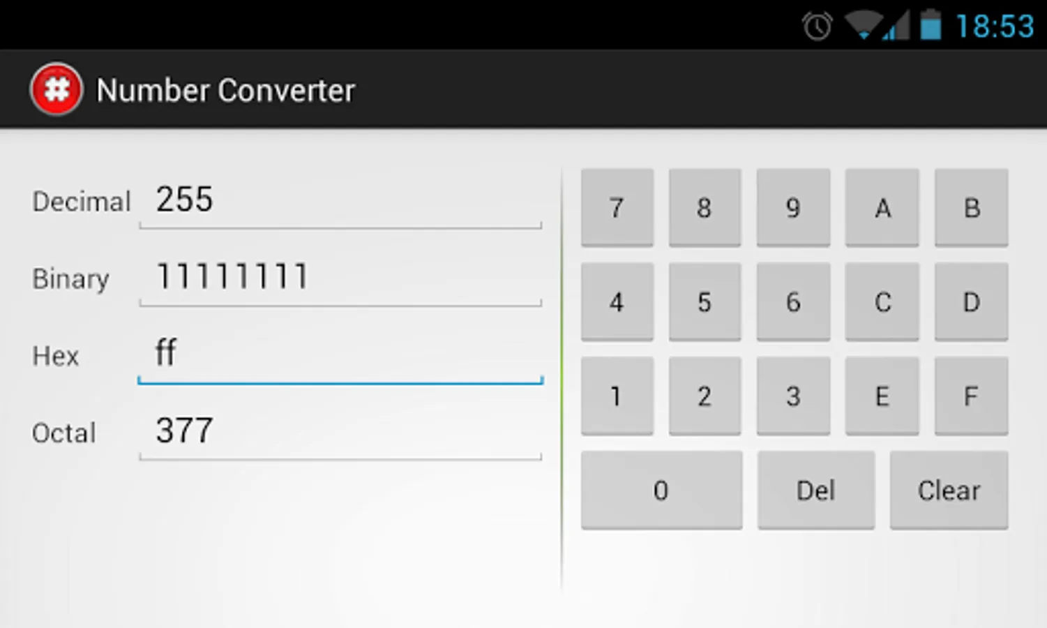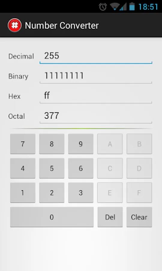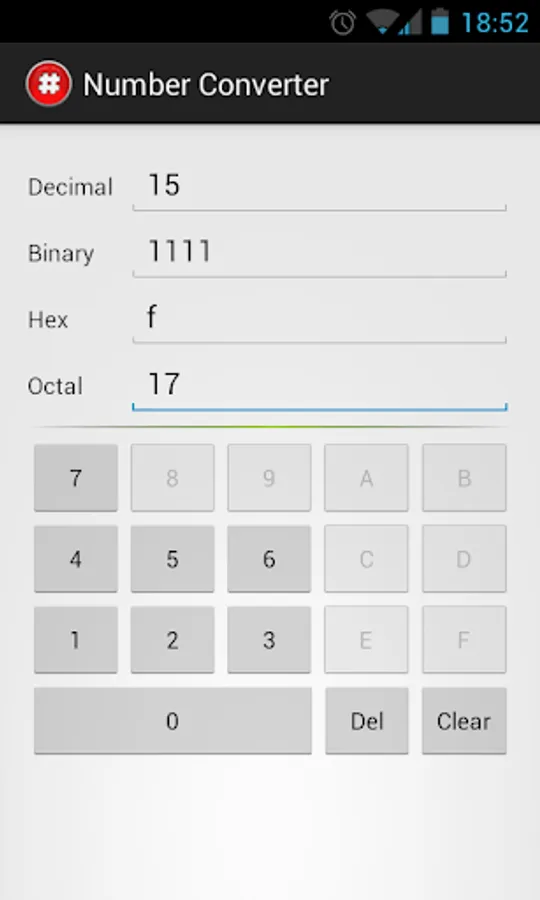 Automatically converts decimal, binary, hexadecimal and octal number.
