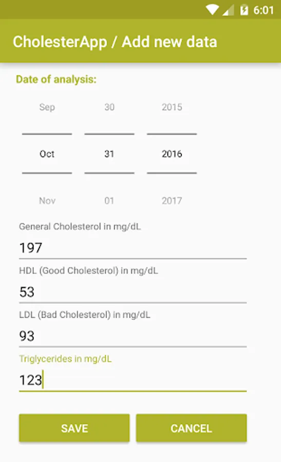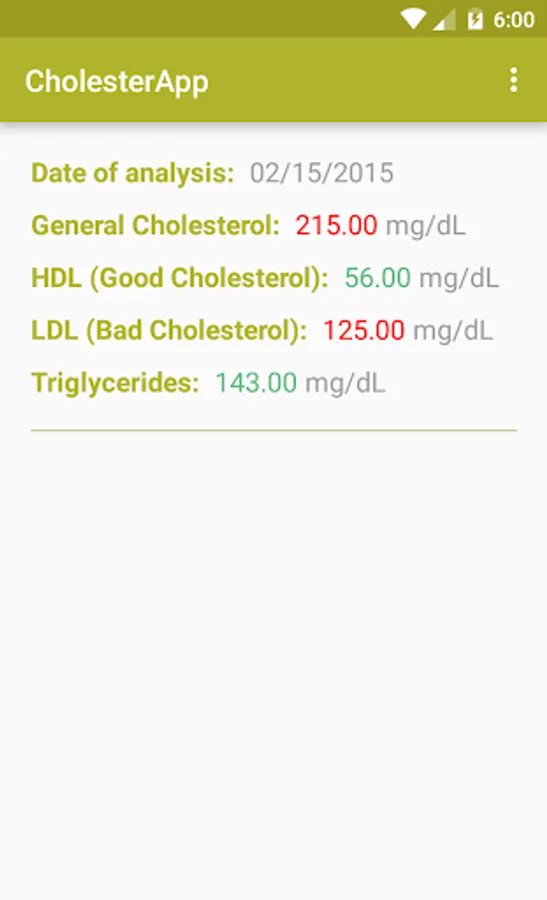CholesterApp is a new practical and simple application that allows to save your cholesterol history on your mobile. If you are tired of searching previous results on paper format, now you can save it on CholesterApp.