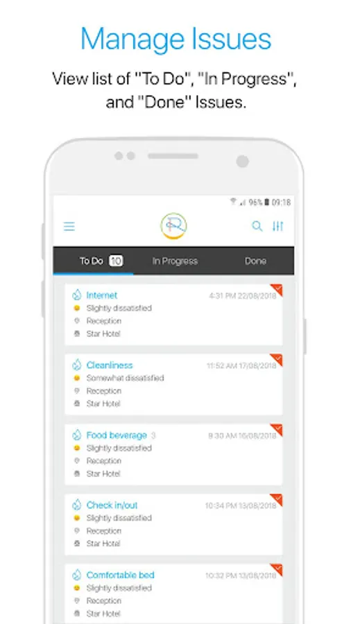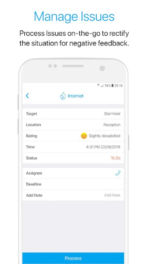 iRATING is used by Supervisor and Assignee to manage issues on the go. Issues are negative feedback from your customers. The Supervisor can also analyze customer response results via powerful reports so that can have immediate actions to improve company services/products and customer satisfaction.