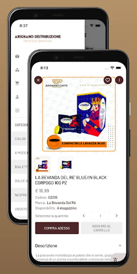 Arignano Distribuzione, the cash and carry active in the wholesale distribution for specialized coffee shops, vending products, various food products, liqueurs and many related products.