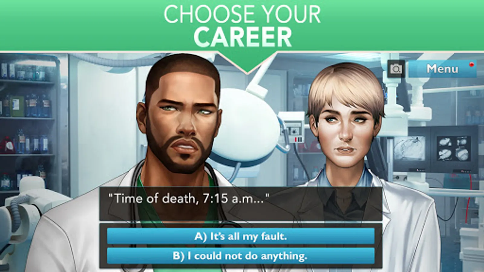 In this episode, you're a grown teen who just left medical school and enters as a first-year doctor in the emergency room of one of the most prestigious hospital on the West Coast, the Blue Swan. You know this is a-once-in-a-lifetime opportunity and you can't screw it up. Being part of the Swans is any young doctor dream come true. As an aspiring doctor, you are prepared to deal with life-or-death consequences on a daily basis, Or are you? It's going to be tough, your nerves will be wrecked and your supervisor will not make life easy for you, But you'll meet friendly colleagues, each one with a different story and calling, with whom to build strong romance, And you may even find love, It's up to you to make your own choices and create your own stories…