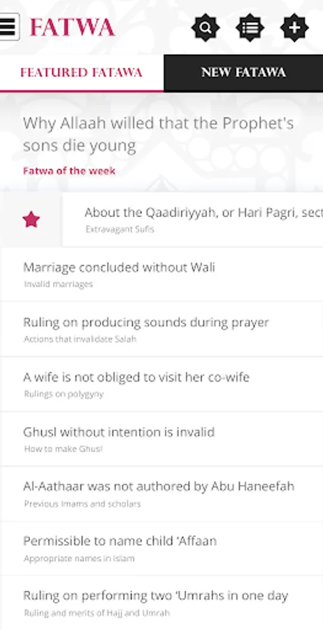 - Mannigfache Fatwas, die die meisten Lebensbereiche abdecken.